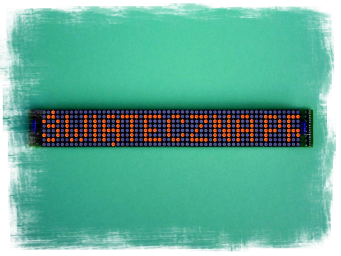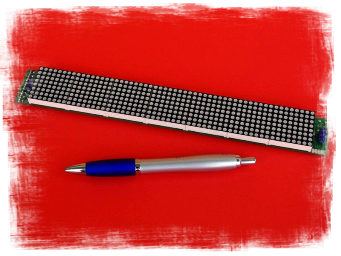 Opracowany wyświetlacz ma wymiary 250 x 33 mm i tworzy go matryca 56 x 8 czerwonych pikseli. Zaprogramowany napis przemieszcza się płynnie w lewo. Napięcie zasilania w granicach 4,5 do 5,5V pozwala na bezpośrednie zasilanie z baterii. Czas pracy zależy od pojemności użytej baterii oraz od treści napisu (średniej liczby świecących pikseli). Układ nie posiada własnego generatora znaków - programuje się kombinacje pikseli a nie kody znaków. Dzięki temu mozaika zapalonych punktów jest całkowicie dowolna i zależna wyłącznie od potrzeb i fantazji użytkownika.