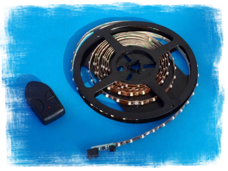 To unikalna oferta na rynku. Taśma elastyczna LED ze zintegrowanym ściemniaczem/sterownikiem i pilotem. Pozwala na zainstalowanie oświetlenia LED bez potrzeby używania nie tylko lutownicy, ale nawet śrubokręta. Wystarczy dołączyć stabilizowany zasilacz 12V ze standardowym wtykiem.